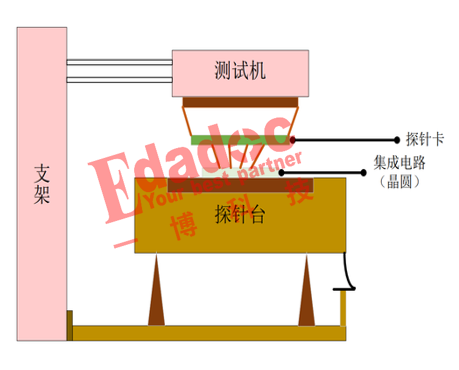 探针卡在CP测试中用于连接测试机和Die上的Pad,通常作为Loadboard的物理接口,在某些情况下ProbeCard通过插座或者其它接口电路附加 到Loadboard上。